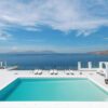 - 1 Master bedroom (24 m2) with en-suite bathroom with shower, queen size bed with Guy Laroche mattress, fireplace, hall, safebox, hairdryer, A/C, access to private balcony (38 m2) with sea view, Mykonos Town